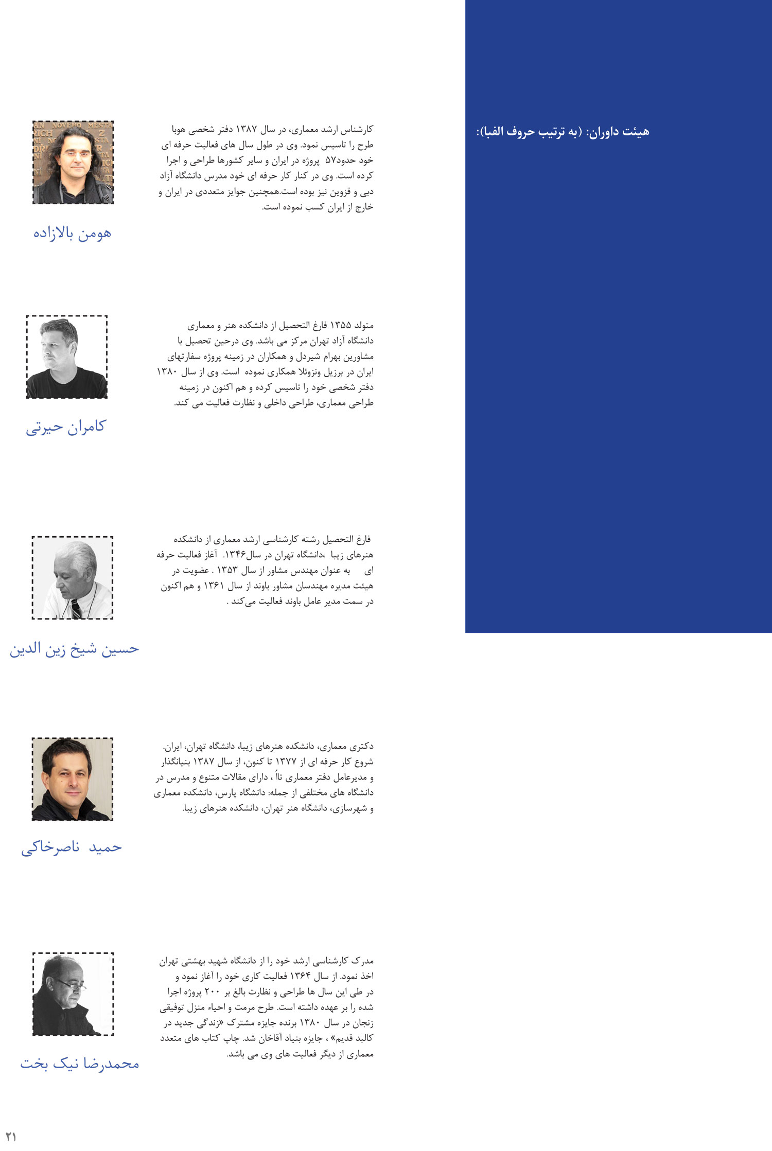 2- جایزه معماری – معماری داخلی به پروژه های اجرا شده در دو زیر گروه ساختمان های مسکونی و عمومی به شرح زیر تعلق می گیرد: