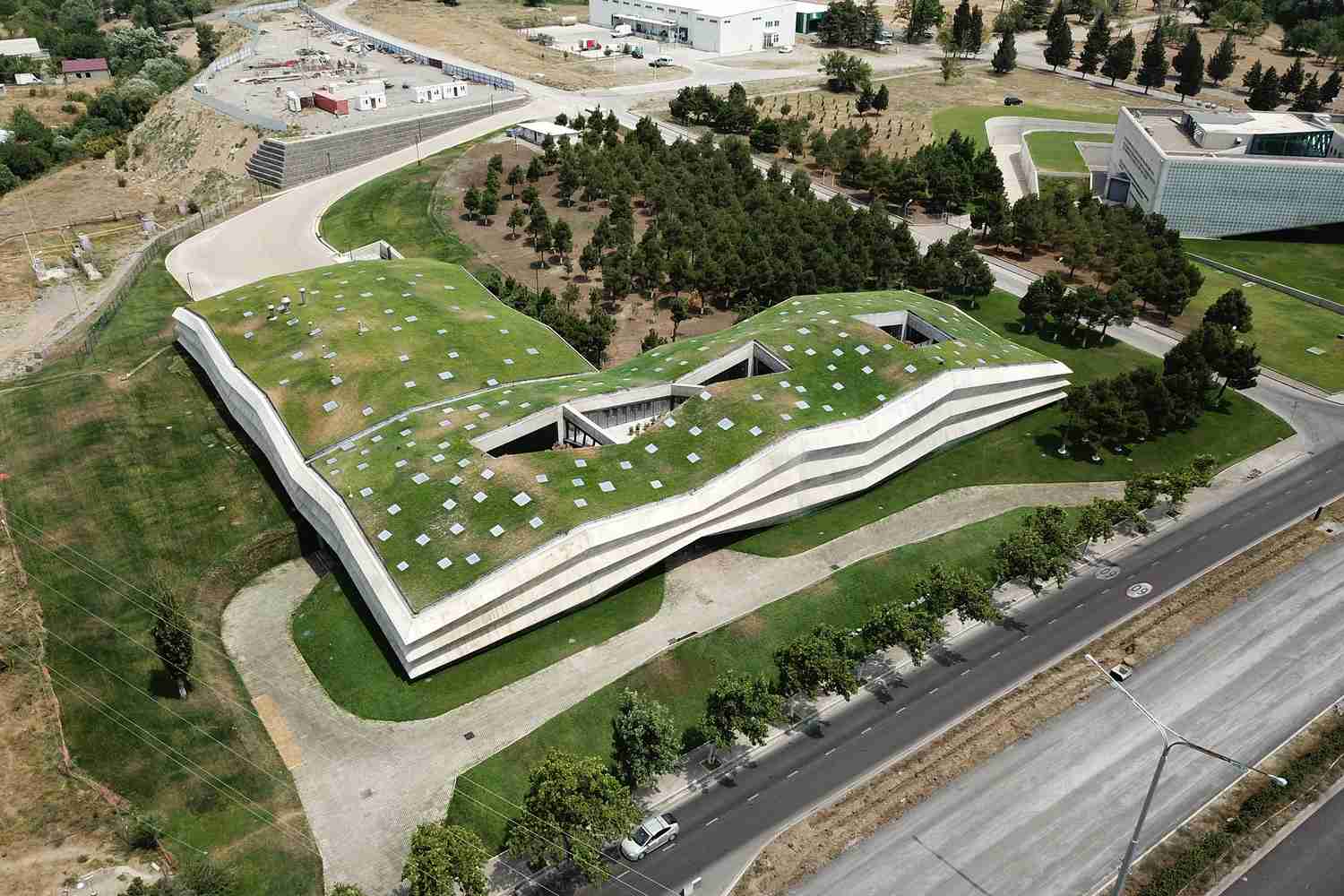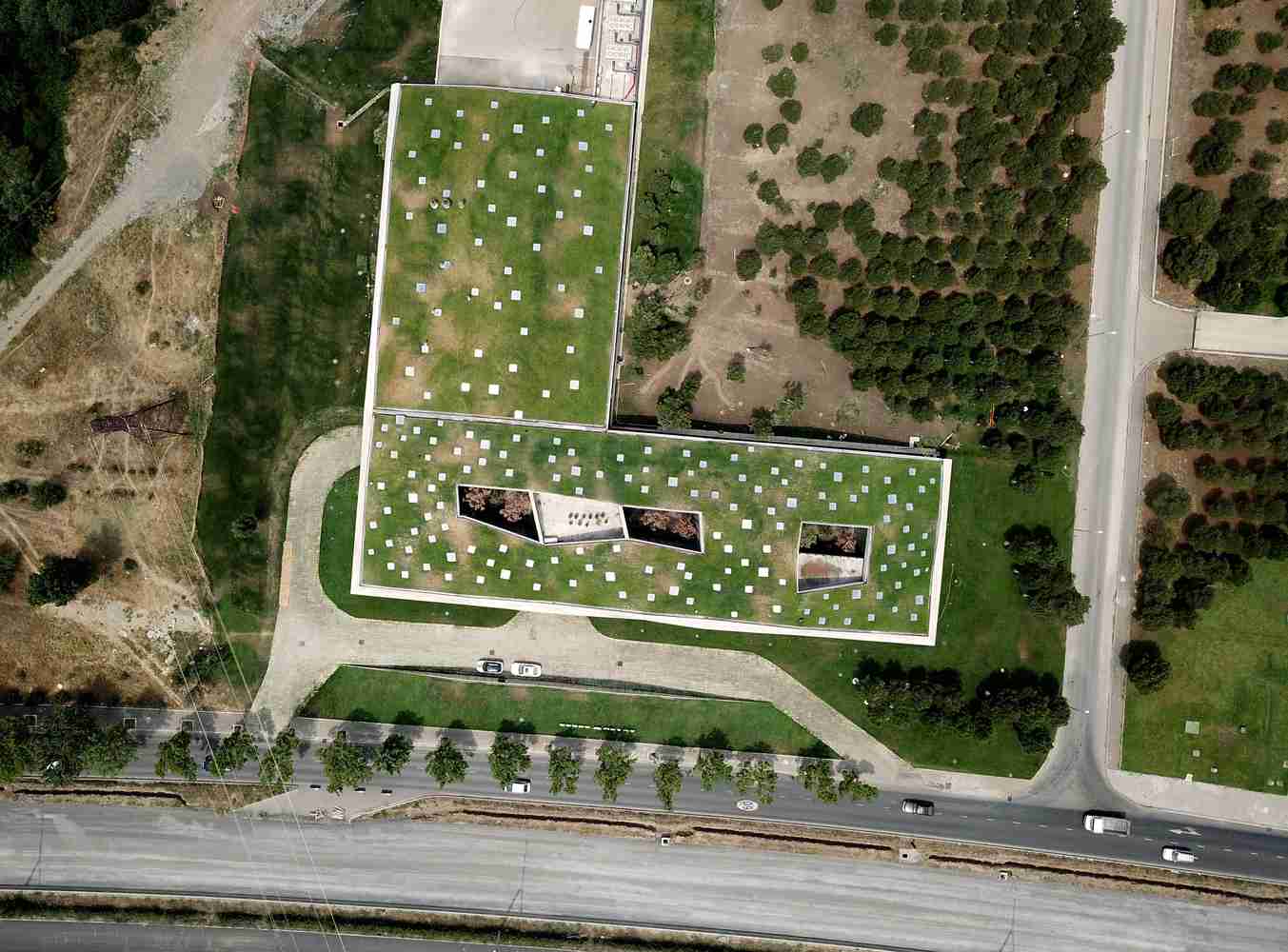 سقف سبز 3،680 متر مربعی به عنوان یک مانع حرارتی اضافی برای عایق سقف عمل می کند. برای پوشش گیاهی این سقف از از گیاهان موجود در اطراف و چمنهای وحشی استفاده شده تا نیاز به مراقبت کمتری داشته باشد.