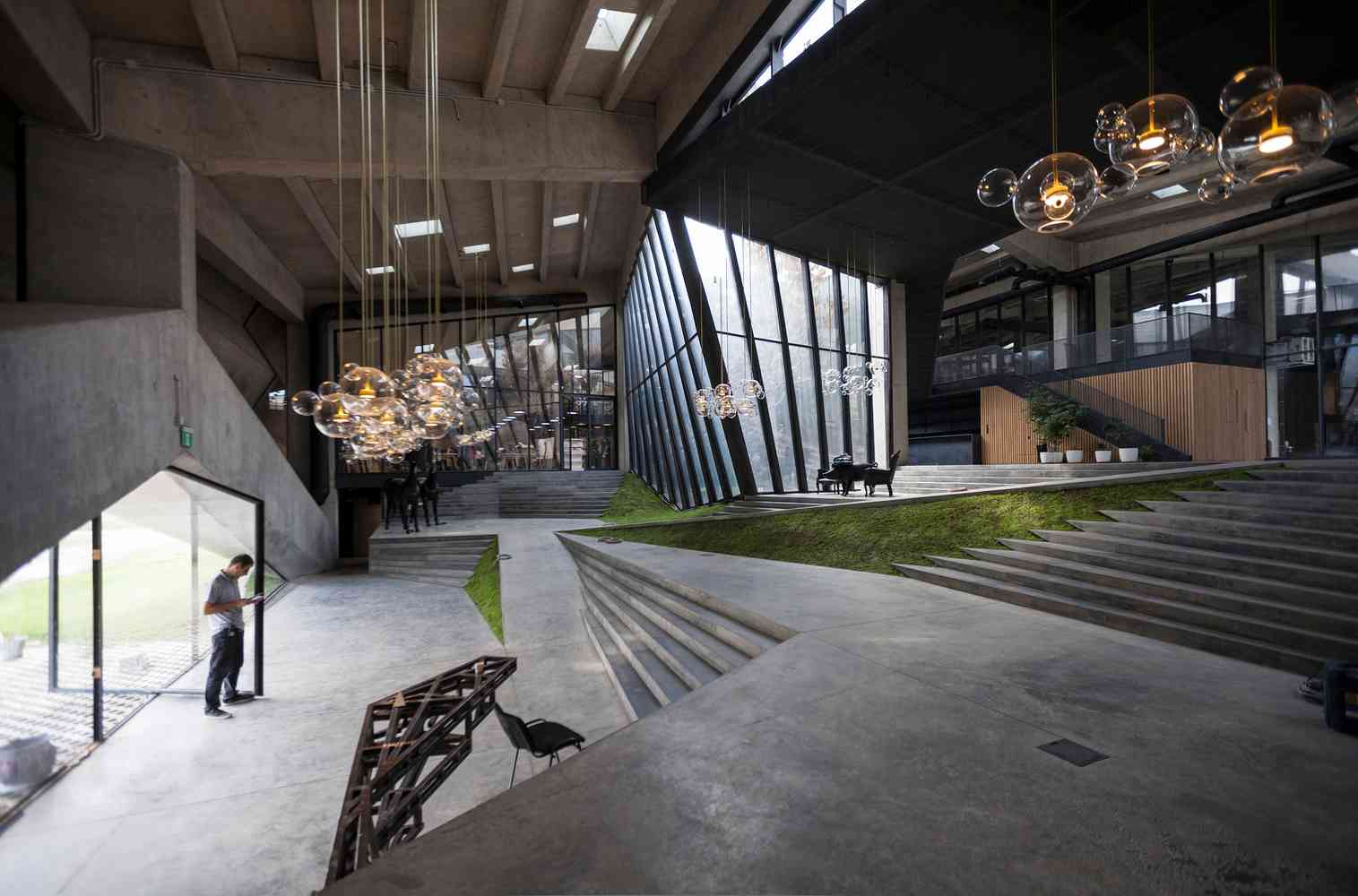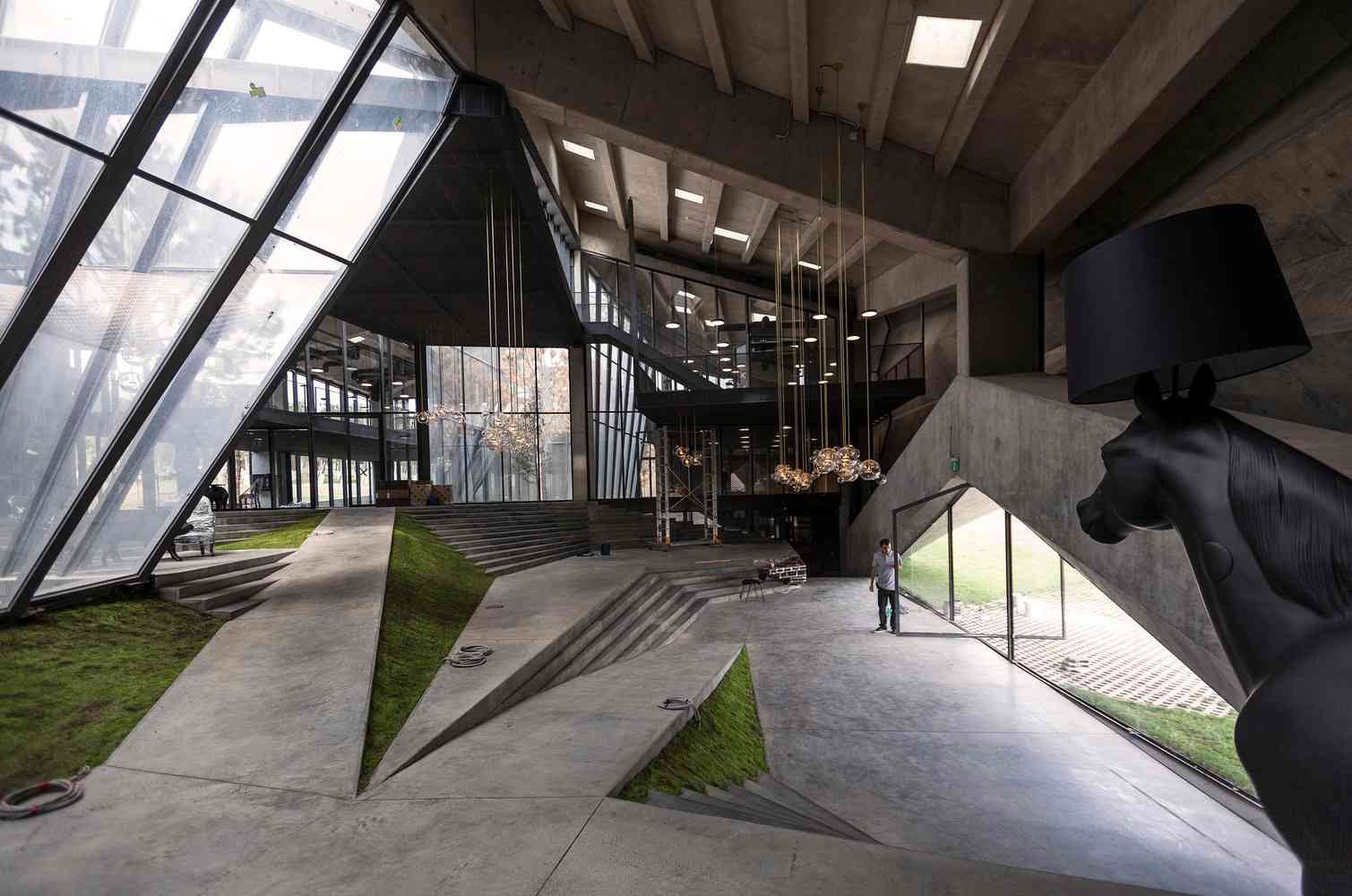 لابی اصلی بنا میان دو آتریوم سبز واقع شده است . نمایشگاه ها و سالن های قهوه روی سکوهای چند سطحی در امتداد پله ها و رمپ ها منتهی به کافه هایی برای چشیدن طعم قهوه و فضای اداری قرار داده شده است.