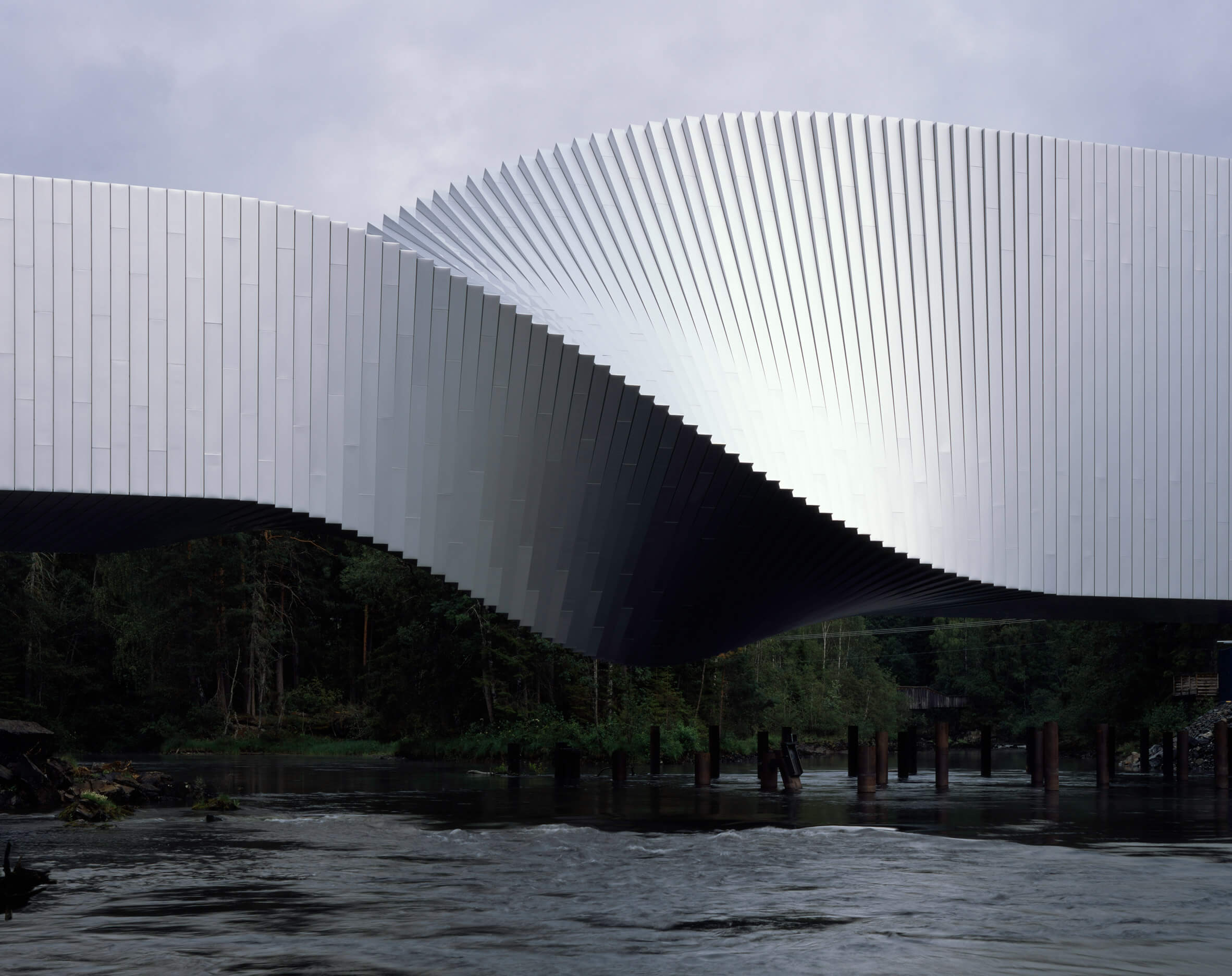 به عنوان یک سایت پسا صنعتی، ساختمان در نوارهایی از آلومینیوم خام پیچیده شده است. نوارهایی که همچون دسته ای از ورق های بازی به آرامی پیچ و تاب خورده و موجب ایجاد خطای بصری از یک فرم خمیده می شوند. همچنین نمای آلومینیومی به این بنا ظاهری خاص بخشیده و به یکپارچه سازی دو انتهای ساختمان که از نظر اندازه و شخصیت با یکدیگر متفاوت هستند، کمک می کند.